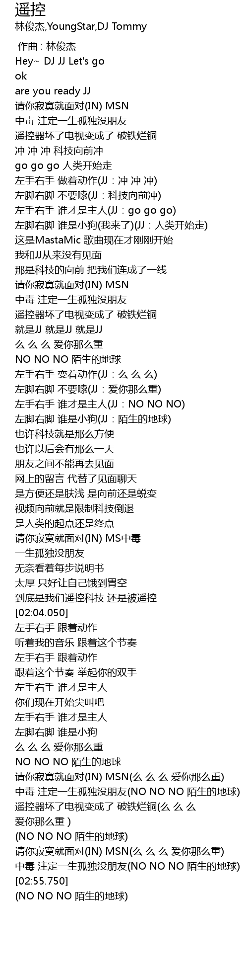 | [01:19.740] | zuo shou you shou shui cai shi zhu ren JJ: NO NO NO |