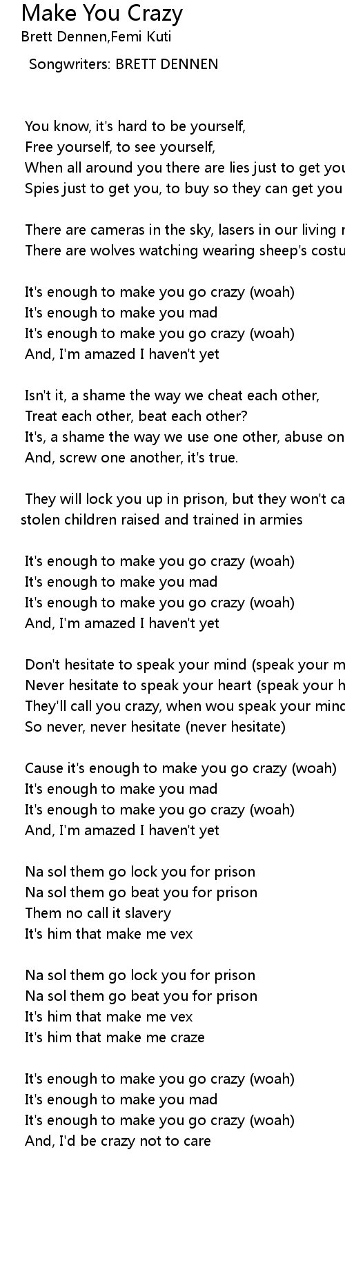 It's enough to make you go crazy (woah) |