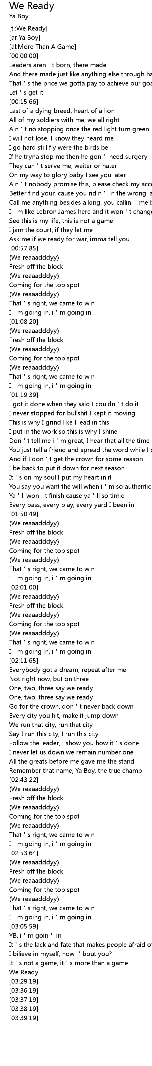 | [02:41.18] | Remember that name, Ya Boy, the true champ |