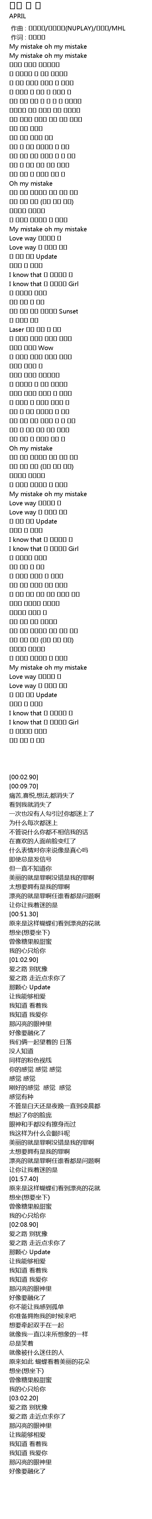 | [00:02.90] | My mistake oh my mistake |