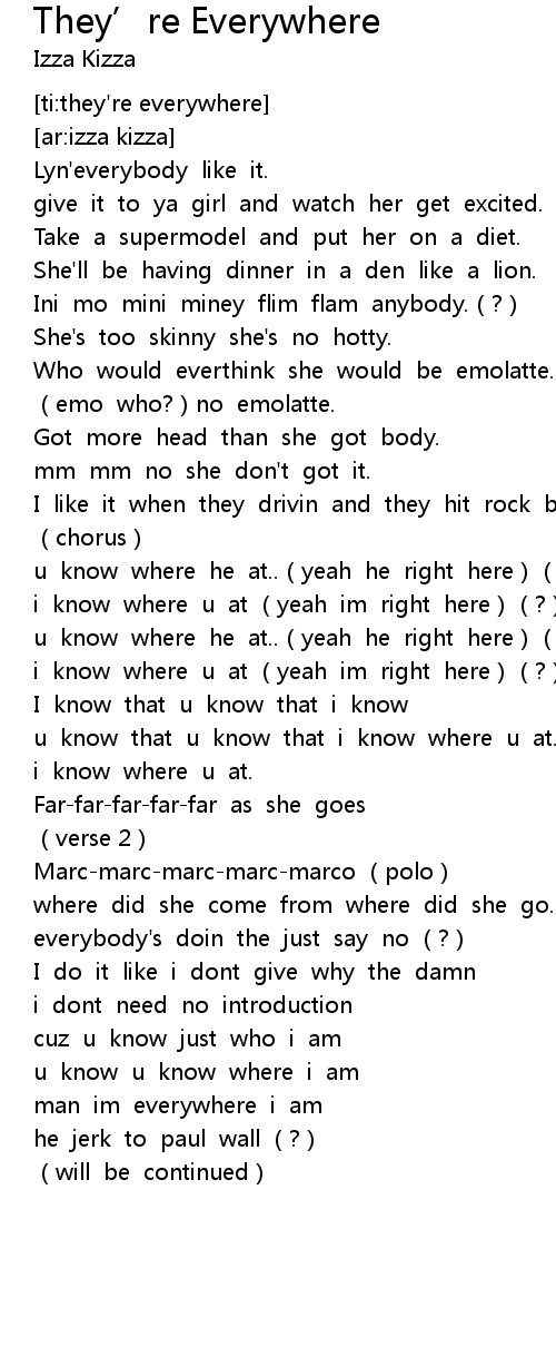 | [00:44.493] | u know that u know that i know where u at. |