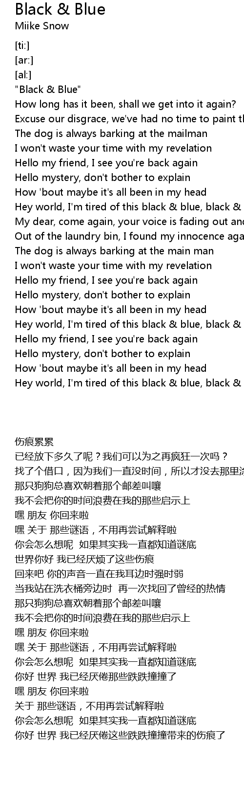 Hey world, I'm tired of this black & blue, black & blue |