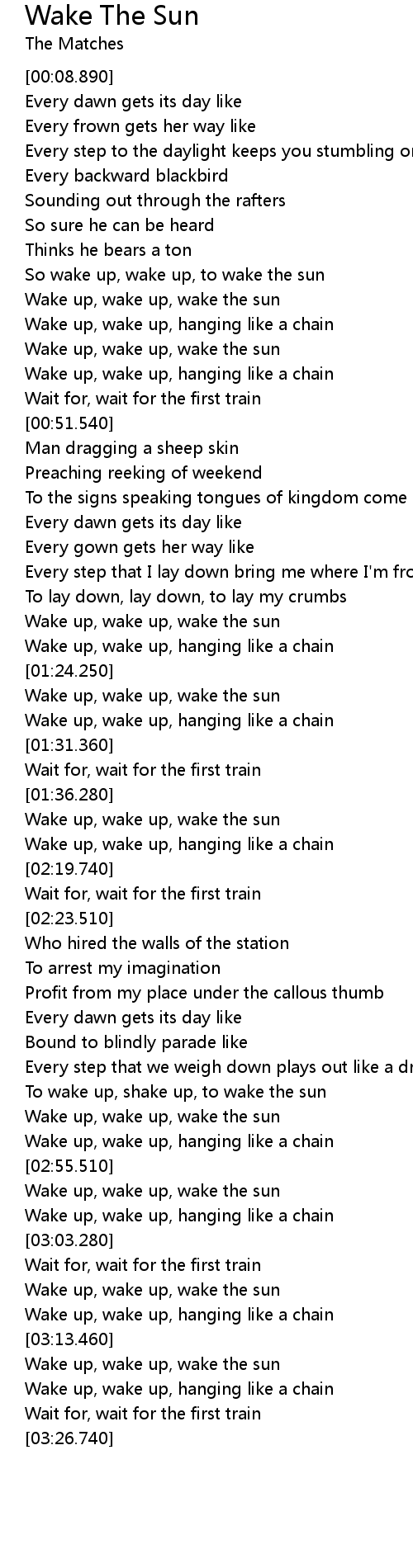 So wake up, wake up, to wake the sun |