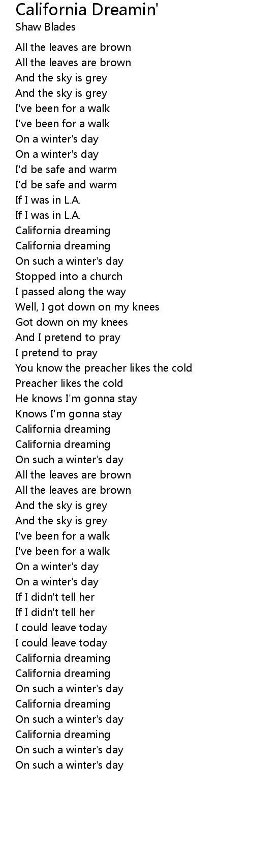 | [00:34.77] | California dreaming |