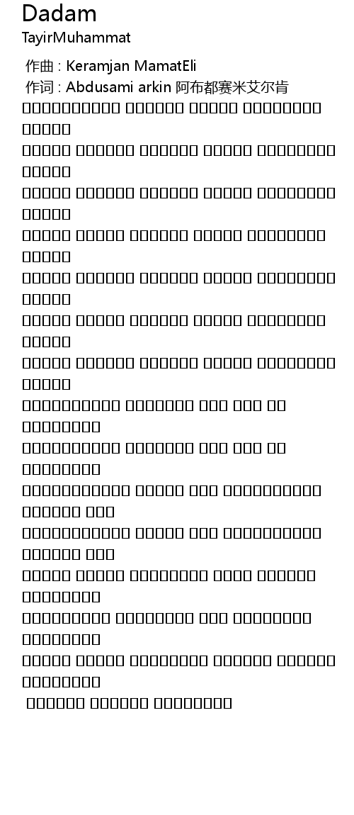 作词 : Abdusami arkin 阿布都赛米艾尔肯 |