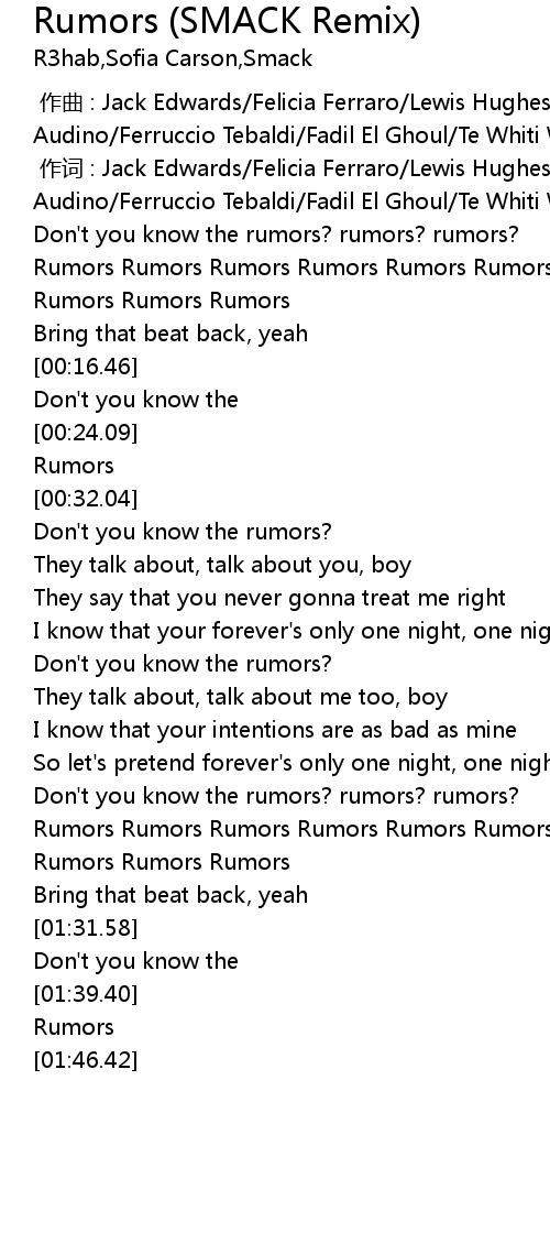 | [01:19.11] | Rumors Rumors Rumors Rumors Rumors Rumors |