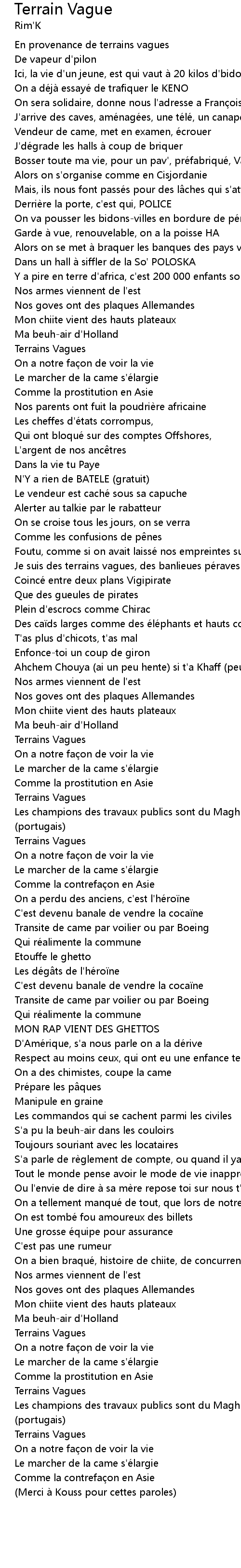 | Je suis des terrains vagues, des banlieues pé raves | |
