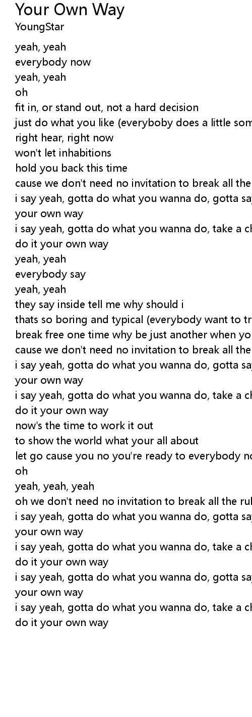i say yeah, gotta do what you wanna do, gotta say what you wanna say, just do it your own way |