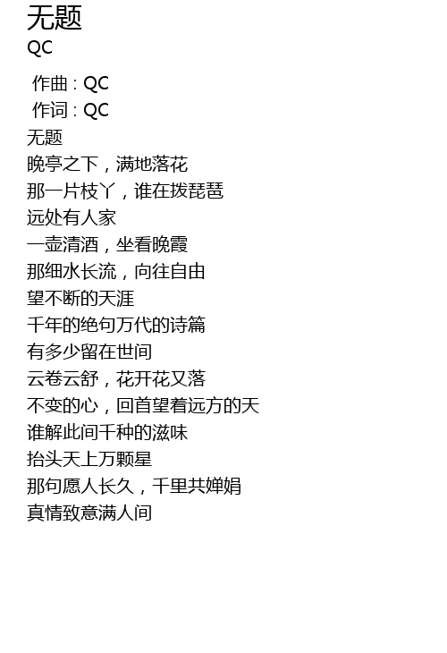 | [00:00.902] | 作词 : QC |