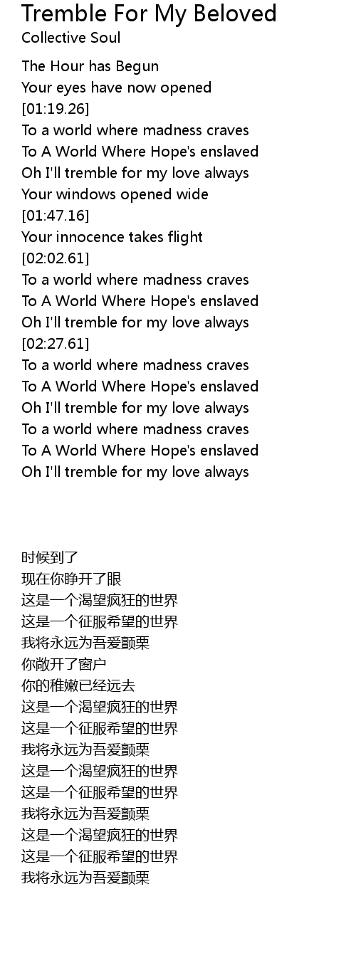 Oh I'll tremble for my love always |