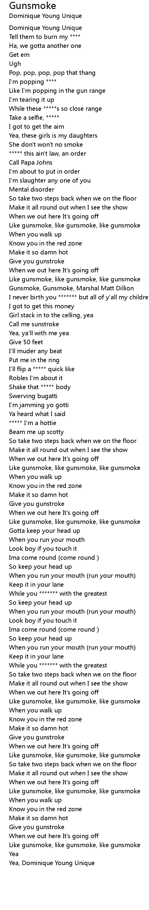 Like gunsmoke, like gunsmoke, like gunsmoke |