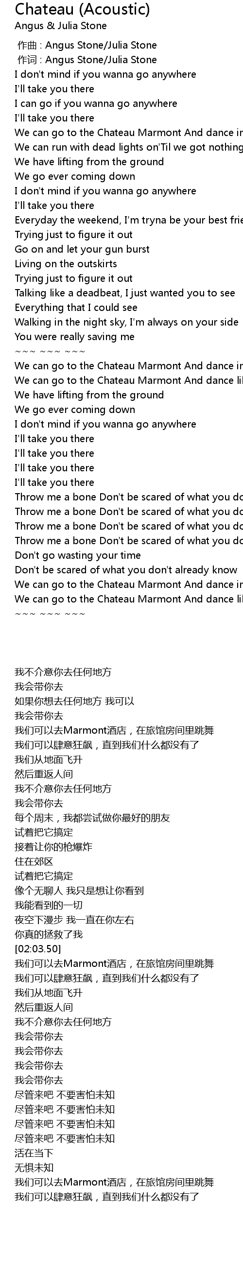 | [00:01.000] | 作词 : Angus Stone/Julia Stone |