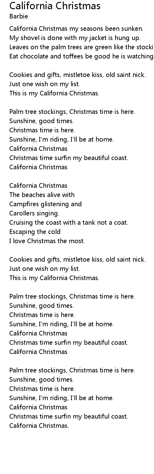 California Christmas my seasons been sunken. |