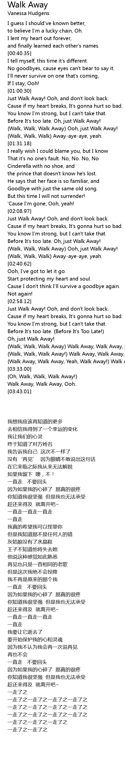 (Walk Away, Walk Away, Yeah, Walk Away!) Walk Away, Walk Away. |