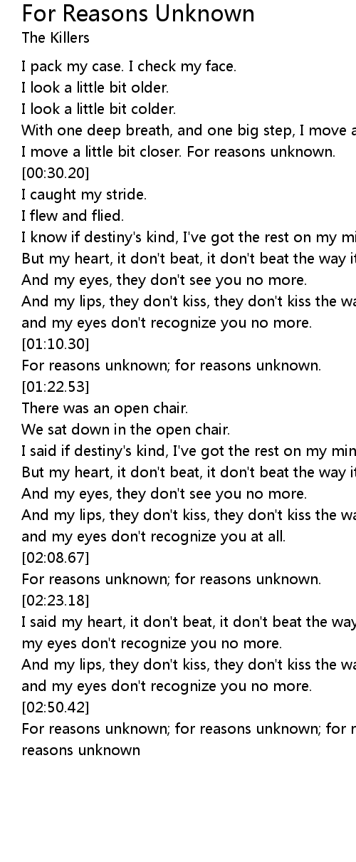For reasons unknown; for reasons unknown; for reasons unknown; for reasons unknown |