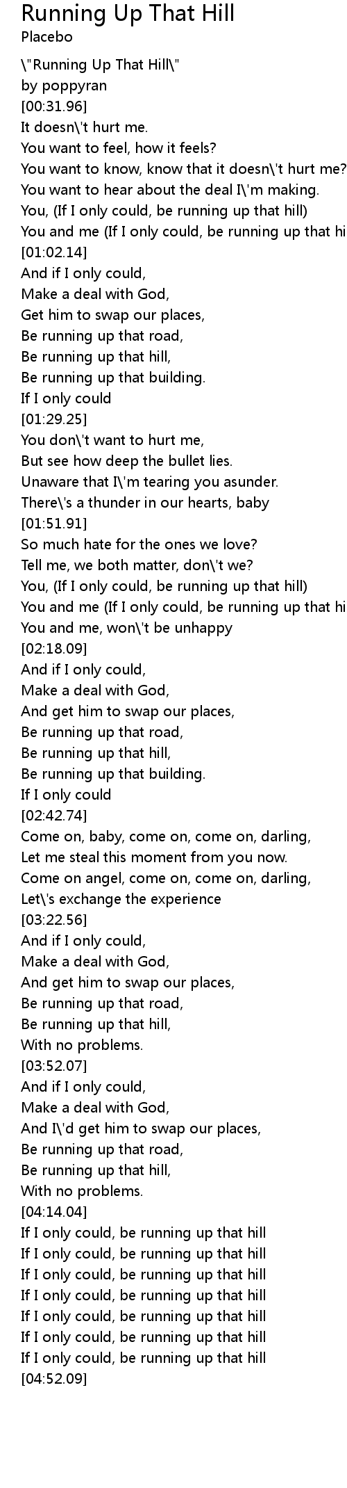 Be running up that hill, |