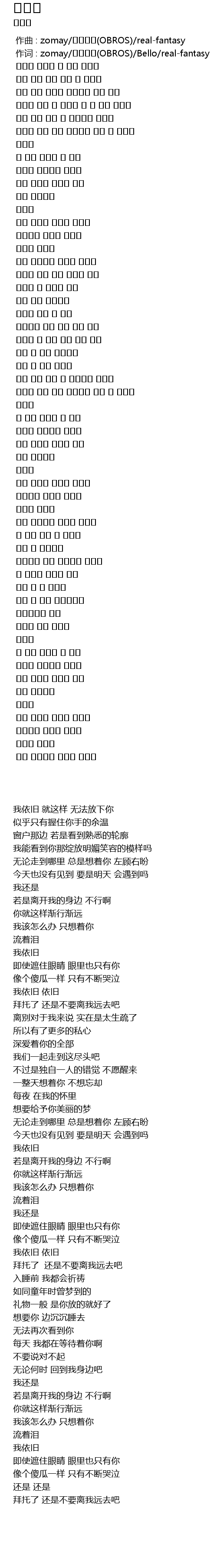 | [00:01.000] | 作词 : zomay/오브로스(OBROS)/Bello/real-fantasy |