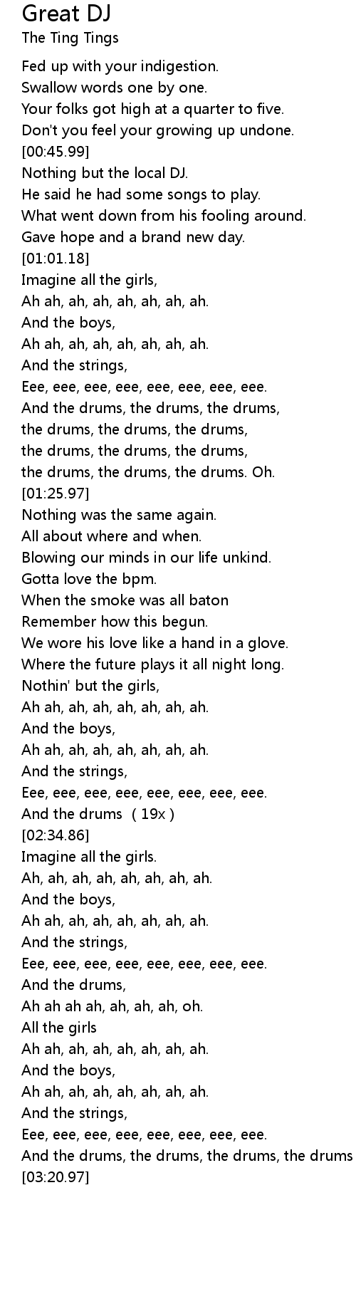 | [03:16.63] | And the drums, the drums, the drums, the drums |