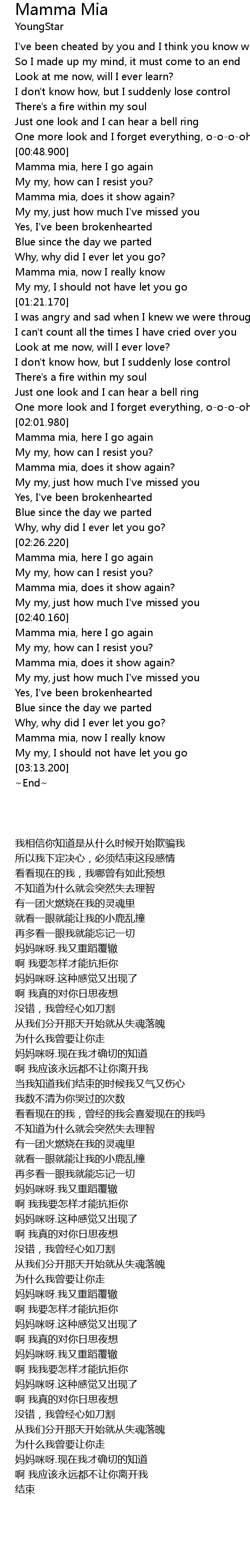 | [03:04.940] | Mamma mia, now I really know |