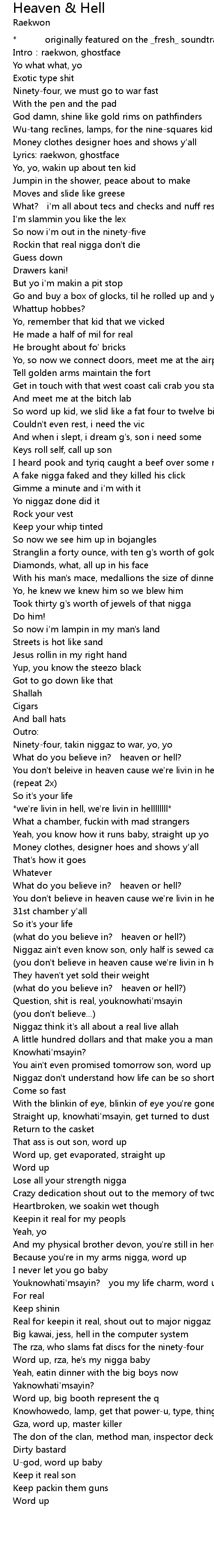 | Lyrics: raekwon, ghostface | |
