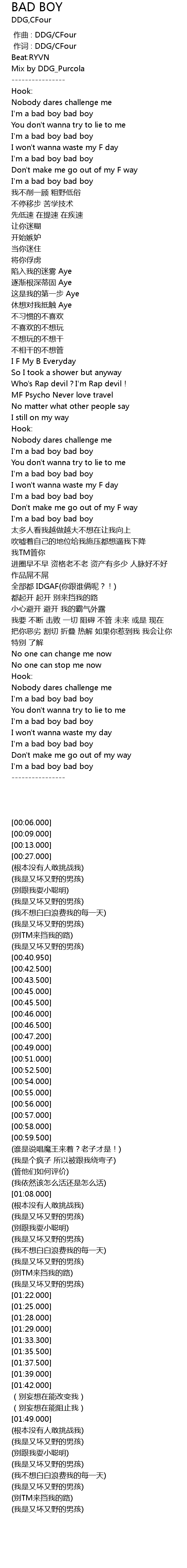 | [00:01.000] | 作词 : DDG/CFour |