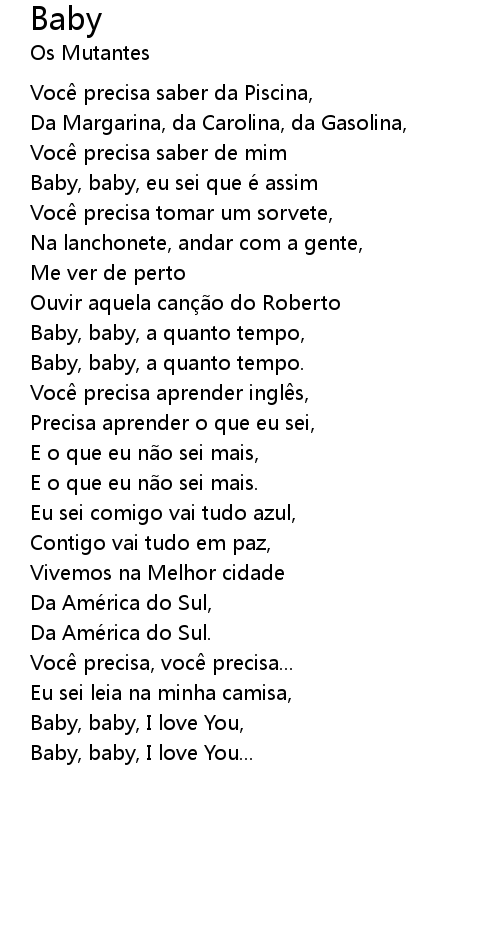 | Baby, baby, eu sei que é assim | |