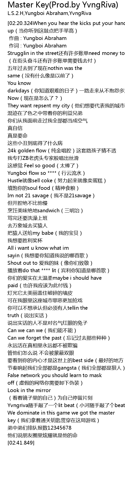 | [01:29.375] | Yungboi flow so ****(行云流水) |