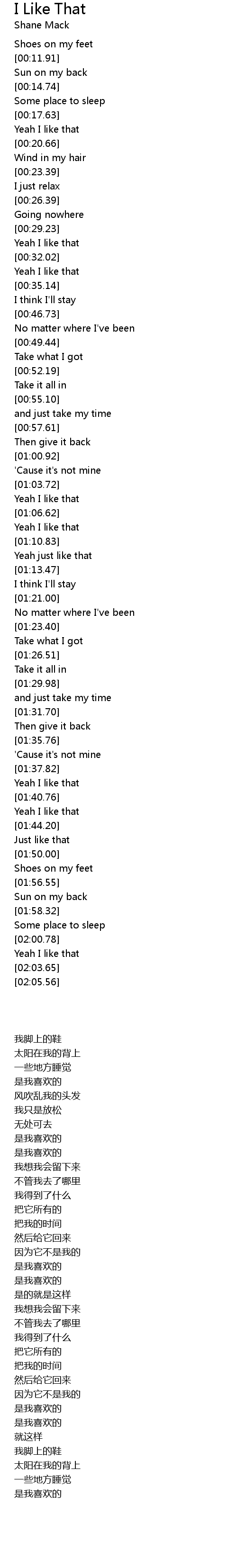 | [01:53.47] | Shoes on my feet |