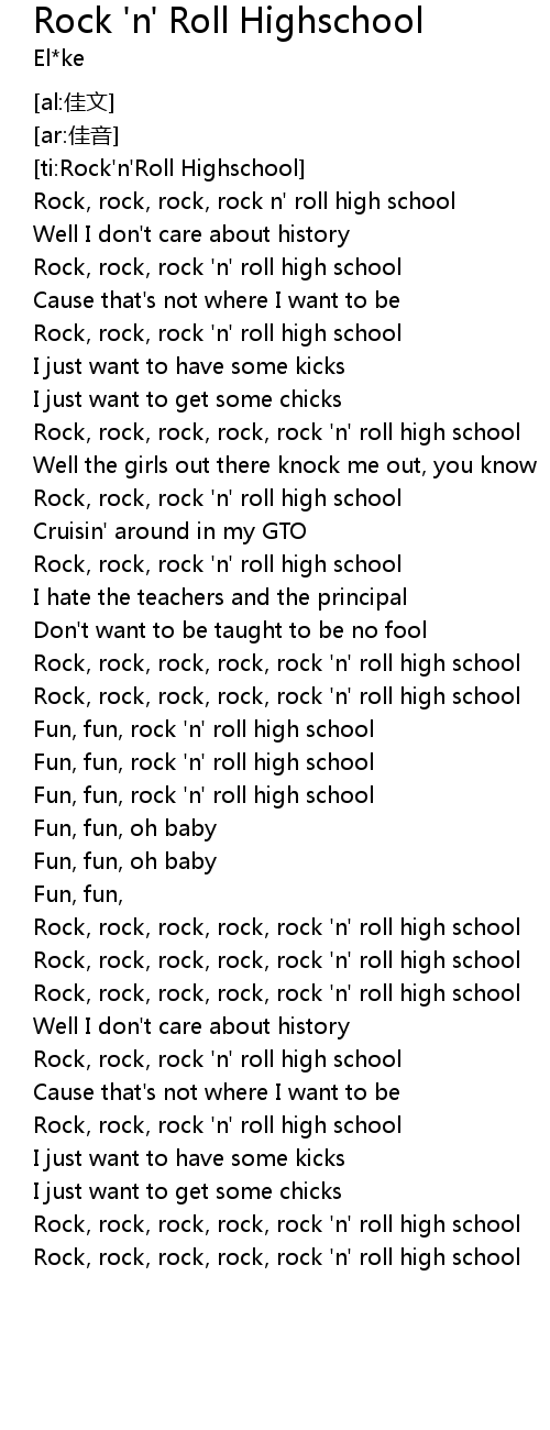 | [00:52.23] | Rock, rock, rock, rock, rock 'n' roll high school |