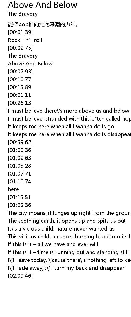 | [00:07.08] | Above And Below |