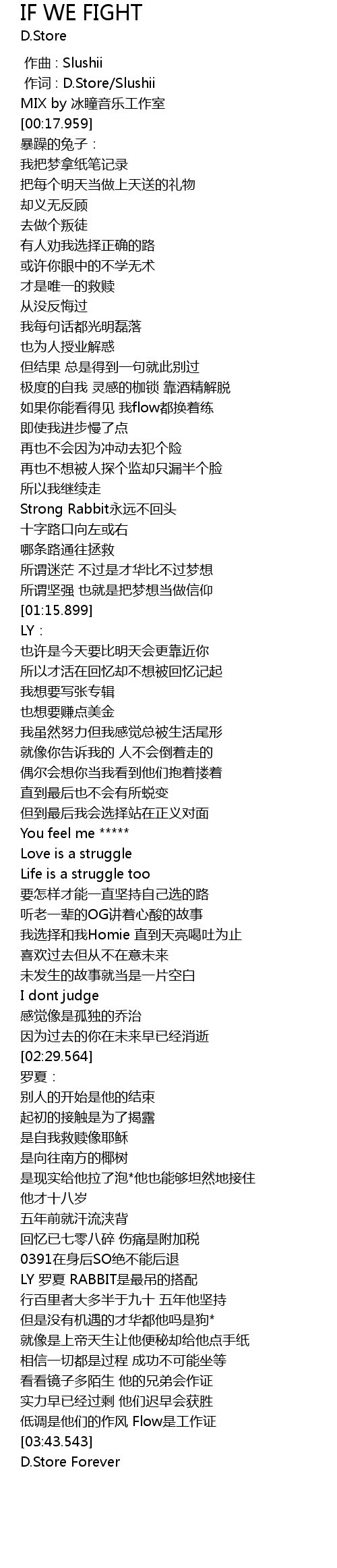 | [01:03.308] | Strong Rabbit yǒng yuǎn bù huí tóu |