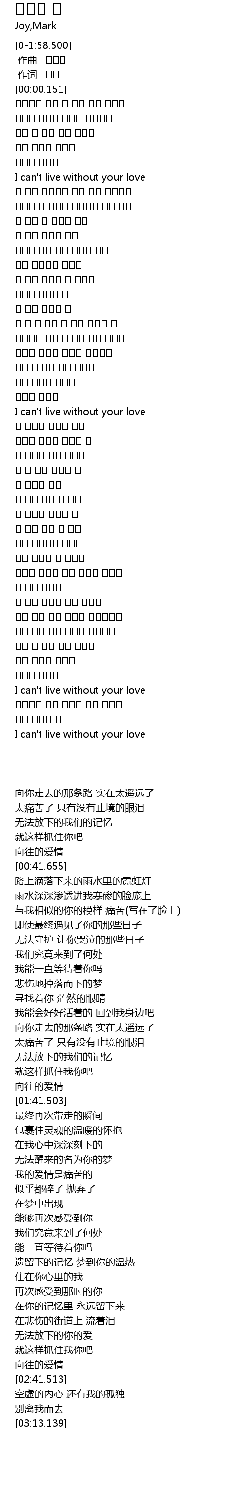 | [01:41.503] | I can' t live without your love |