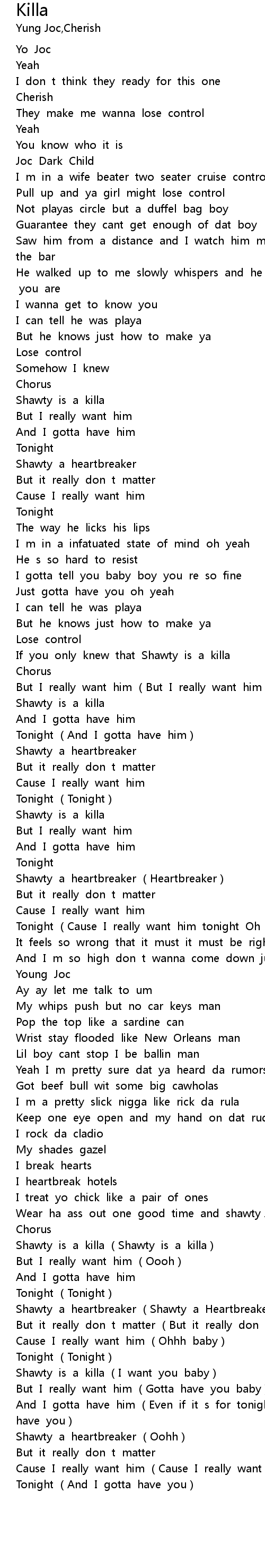 | [02:43.108] | Shawty is a killa (Shawty is a killa) |