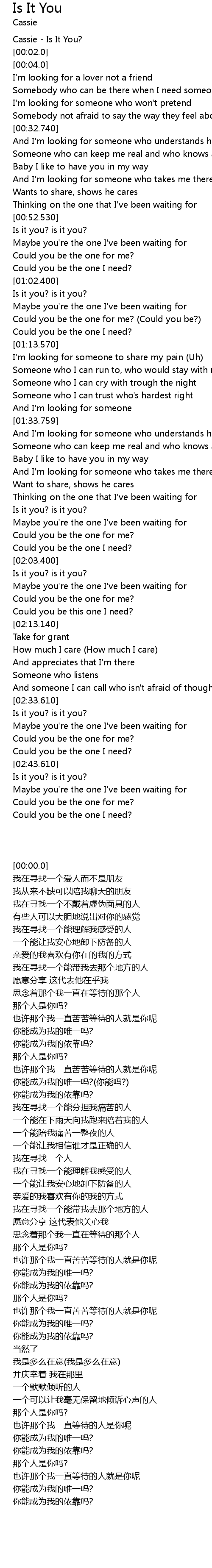 Cassie - Is It You? |