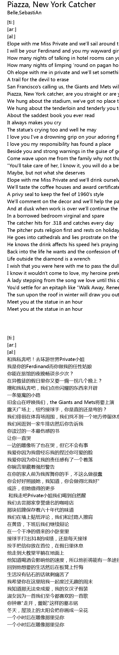 | [00:36.67] | San Francisco's calling us, the Giants and Mets will play |