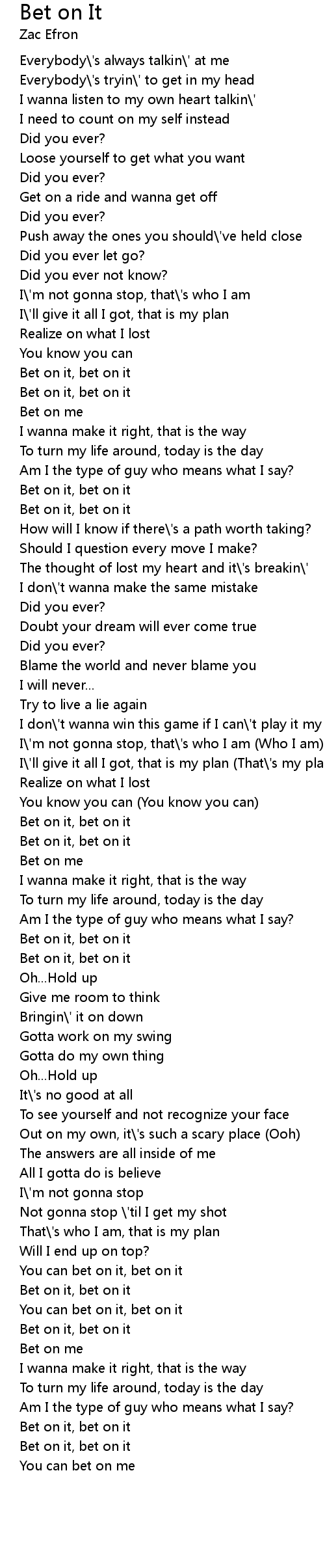 Bet on it, bet on it |