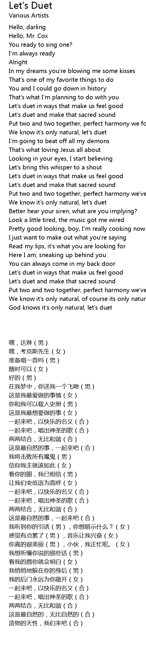 God knows it's only natural, let's duet |