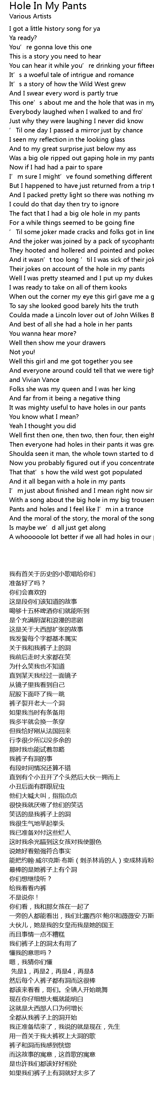 | [00:34.355] | This one' s about me and the hole that was in my pants |