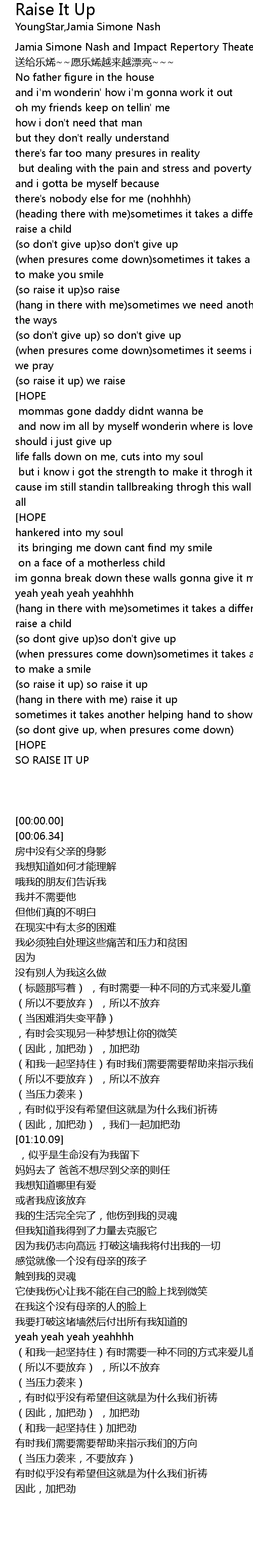 | [00:00.00] | Jamia Simone Nash and Impact Repertory Theater - Raise It Up |