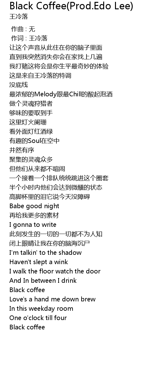 | [01:58.47] | Black coffee |
