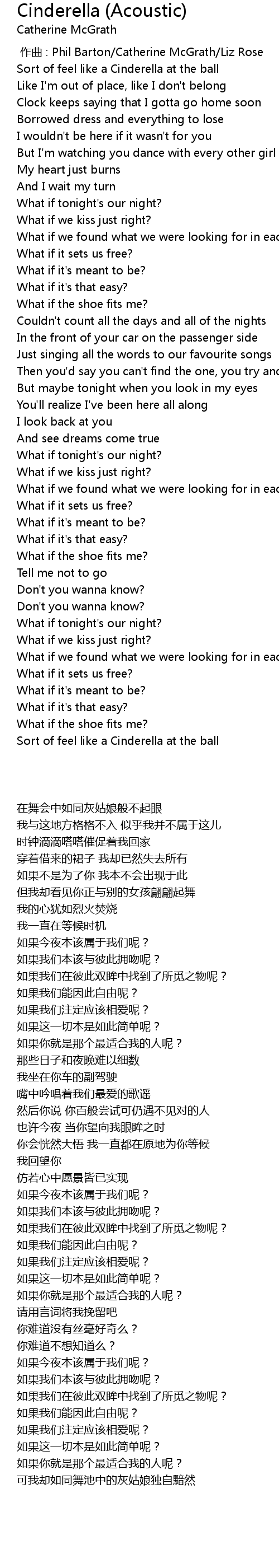 | [00:00.000] | zuo qu : Phil Barton Catherine McGrath Liz Rose |