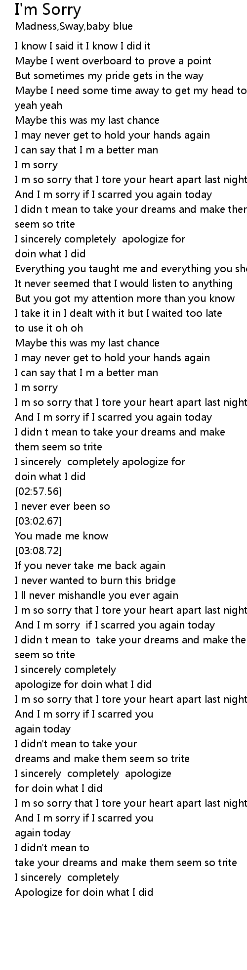 | [03:56.45] | I m so sorry that I tore your heart apart last night |