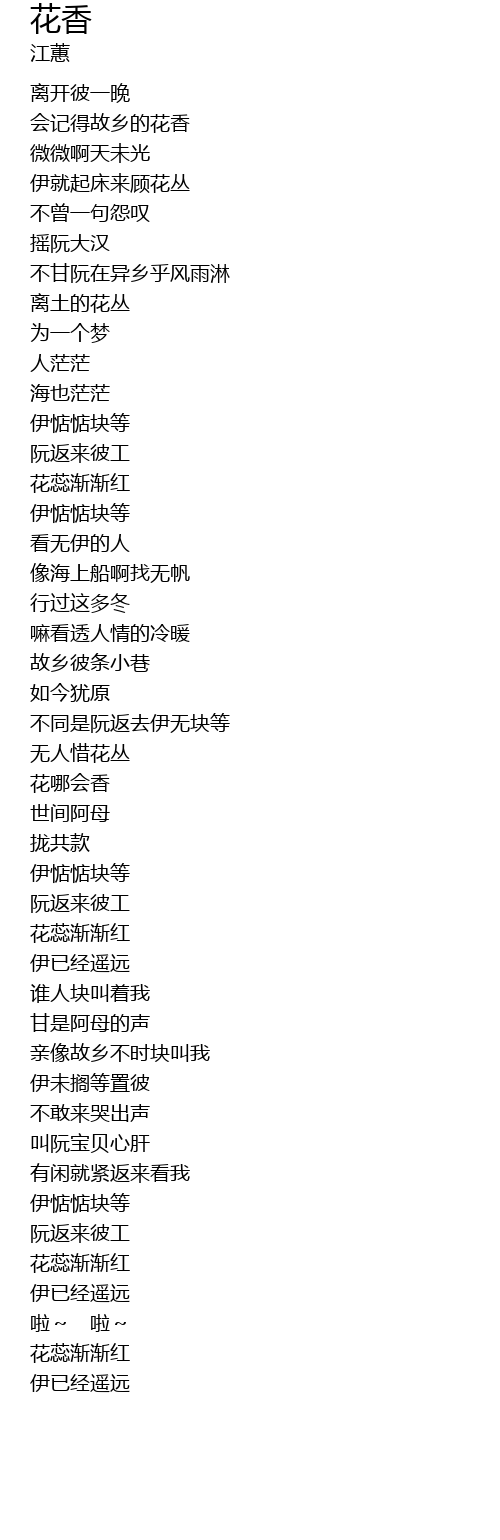| [00:36.63] | huì jì de gù xiāng de huā xiāng |