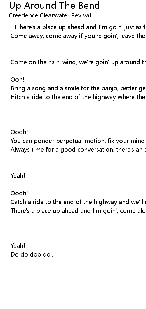| Come on the risin' wind, we're goin' up around the bend. | |