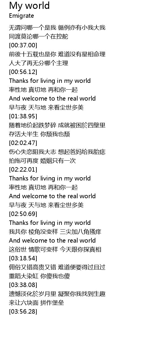 | [00:58.15] | Thanks for living in my world |