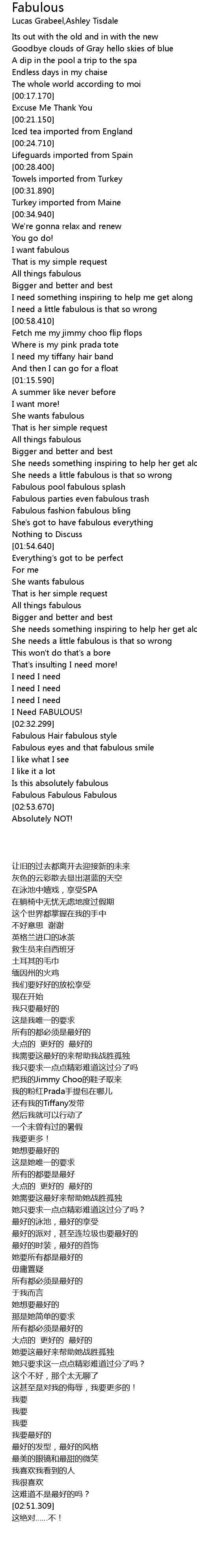 | [00:54.200] | I need a little fabulous is that so wrong |