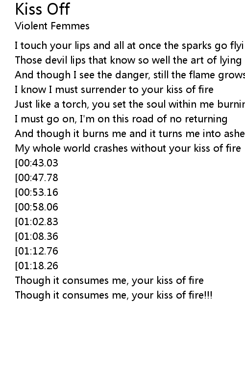 My whole world crashes without your kiss of fire |
