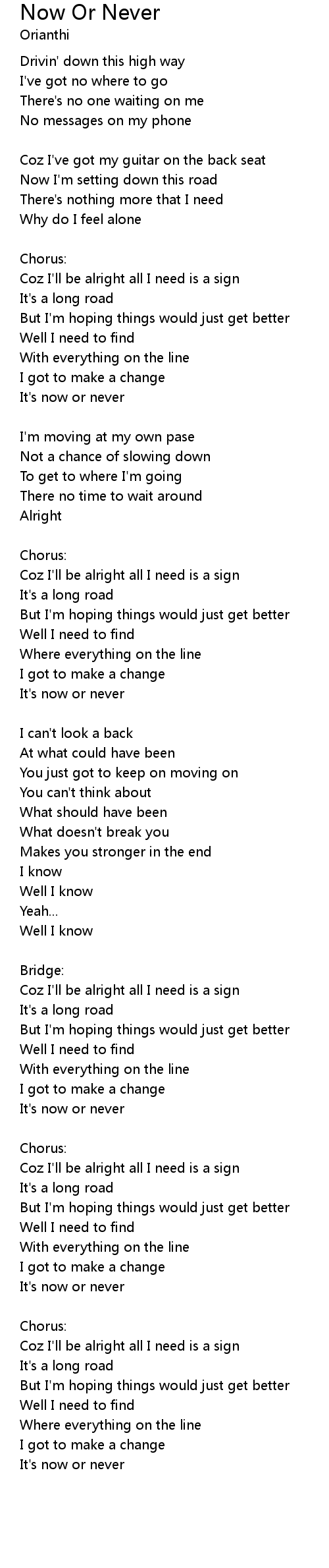 Coz I'll be alright all I need is a sign |