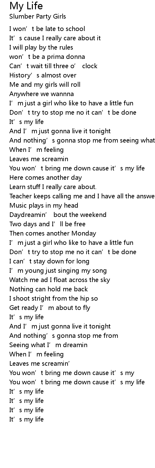 | [00:53.43] | You won' t bring me down cause it' s my life |