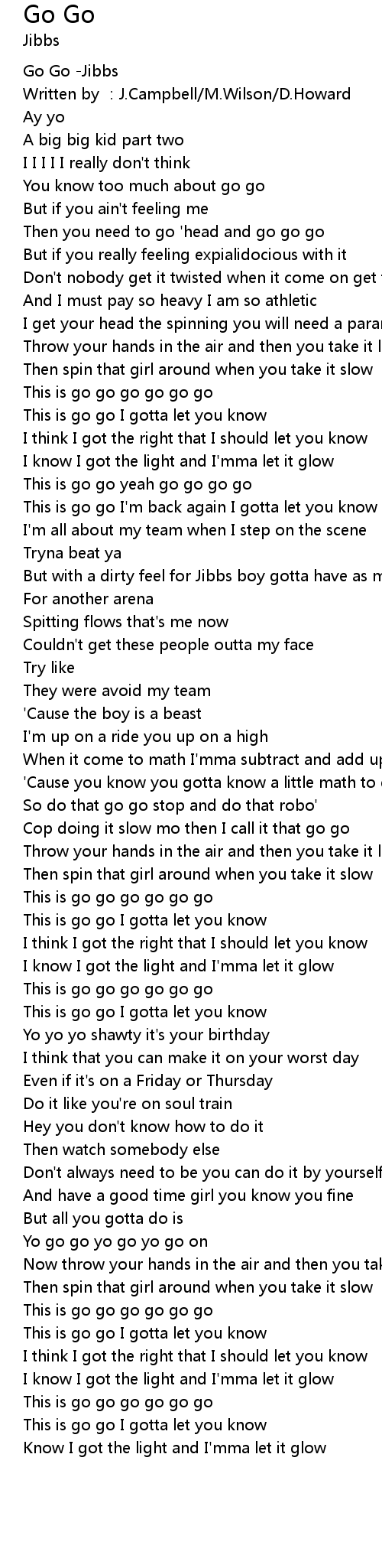 | [00:00.359] | Go Go -Jibbs |
